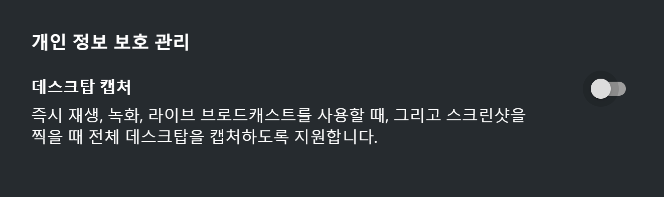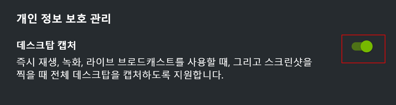 데스크톱 캡처에서 활성화되어있는 버튼을 눌러 비활성화해줍니다