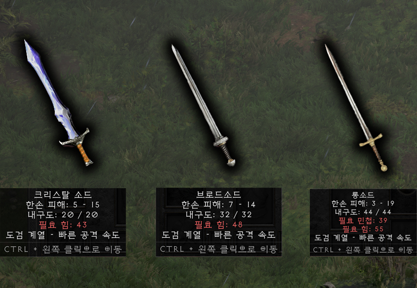 단, 롱소드는 앞의 두 검과 다르게 39의 민첩을 필요로 하기 때문에 주의해야 합니다