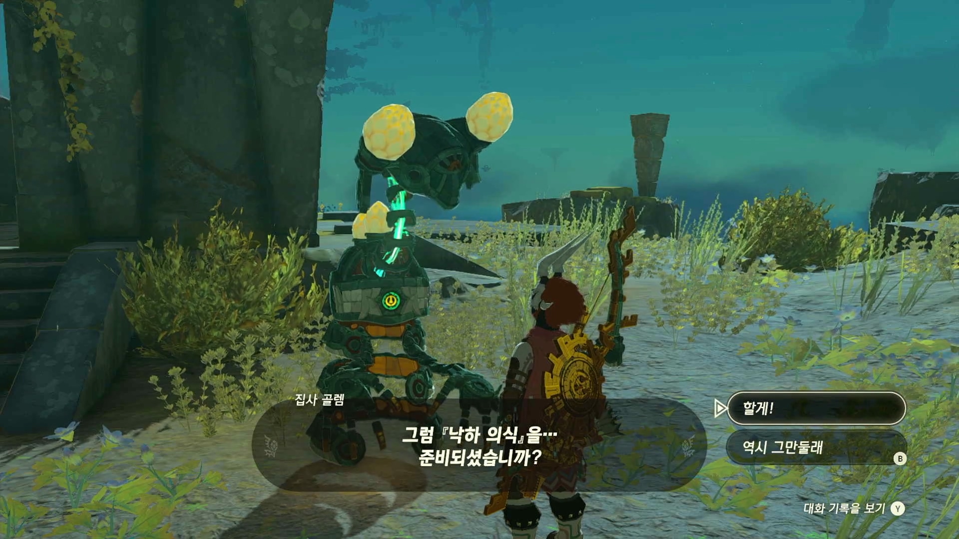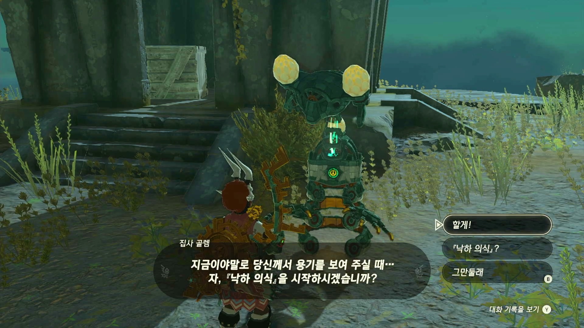 집사골렘에게 말을 걸어 낙하의식을 시작하면