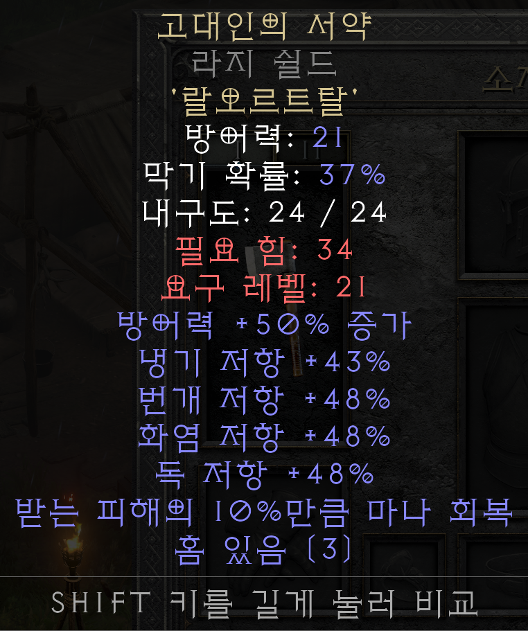 룬어(룬워드) 아이템 고대인의 서약 2021.10.18 13:27 디아블로2 레저렉션 반응형 고대인의 서약 옵션 방어력 50% 증가냉기 저항 43%번개 저항 48%화염 저항 48%독 저항 48%받는 피해의 10%만큼 마나 회복 (3 소켓 방패) 모든 저항이 많이 붙어 있어 저항력을 맞추기 수월해진다 3소켓 방패는 액트2 마을의 파라에게서 구매할 수 있다 만약 룬이 없다면액트 5의 "아리앗 산에서의 구출" 퀘스트를 완료하면보상으로 랄,오르트,탈 룬을 세트로 준다 혹한의 고산지에서 병사들이 갇힌 감옥을 찾아 문을 부숴 구출 반응형 공유하기 게시글 관리 눈감고 어택땅 저작자표시 비영리 변경금지 (새창열림) '디아블로2 레저렉션' 카테고리의 다른 글 디아블로2 레저렉션 개별로 쓰이는 세트 아이템 (0) 2021.10.20 바알참(거대부적) 돌리기(큐빙) (0) 2021.10.18 룬어(룬워드) 아이템 잎새(꽃잎) (0) 2021.10.18 룬어(룬워드) 아이템 각운(제왕운시) (0) 2021.10.18 초반에 유용한 크래프트 아이템 (0) 2021.10.17 룬어(룬워드) 아이템 전승(학식) (0) 2021.10.17 댓글 공유하기 다른 글 댓글 이 글 공유하기 구독하기 구독하기 카카오톡 카카오톡 라인 라인 트위터 트위터 Facebook Facebook 카카오스토리 카카오스토리 밴드 밴드 네이버 블로그 네이버 블로그 Pocket Pocket Evernote Evernote 다른 글 바알참(거대부적) 돌리기(큐빙) 바알참(거대부적) 돌리기(큐빙) 2021.10.18 룬어(룬워드) 아이템 잎새(꽃잎) 룬어(룬워드) 아이템 잎새(꽃잎) 2021.10.18 룬어(룬워드) 아이템 각운(제왕운시) 룬어(룬워드) 아이템 각운(제왕운시) 2021.10.18 초반에 유용한 크래프트 아이템 초반에 유용한 크래프트 아이템 2021.10.17 다른 글 더 둘러보기