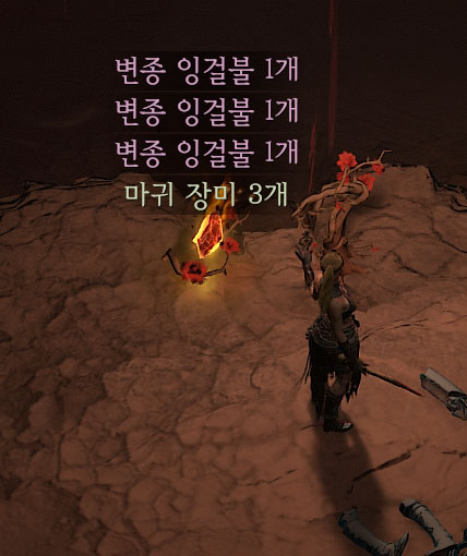 이 변종 잉걸불을 모아서 지옥물결 지옥 내에 배치되어 있는 선물상자를 열어 아이템을 획득하는 것이 목표입니다.