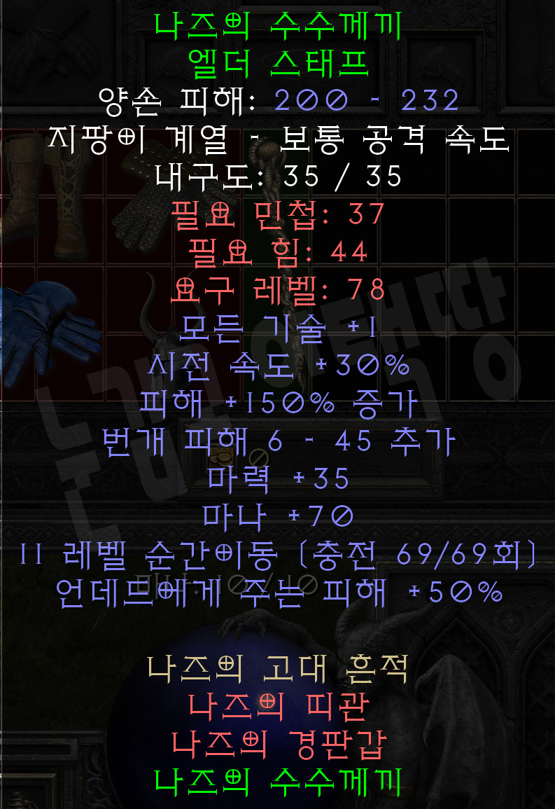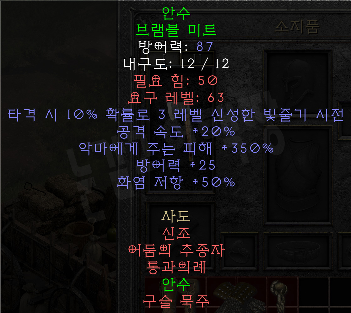 공격 속도를 올려주고 악마에게 주는 피해가 크게 상승해 사냥에 큰 도움이 됨