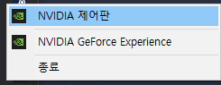 우측 하단에서 엔비디아 아이콘을 우클릭해