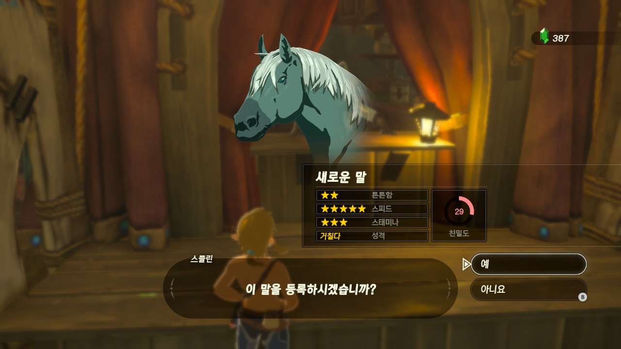저는 취향상 체력과 스태미나가 적은 대신 스피드가 빠른 말을 선택했고 dlc 장비로 부족한 습보 게이지를 보완하려고 합니다
