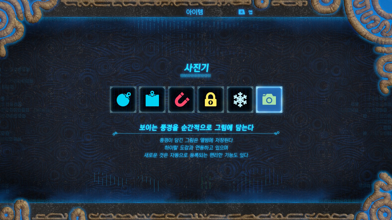 고대 연구소 앞에 불을 붙여주고 프루아에게 말을 걸면 시커 스톤에 사진기 기능을 넣어줍니다