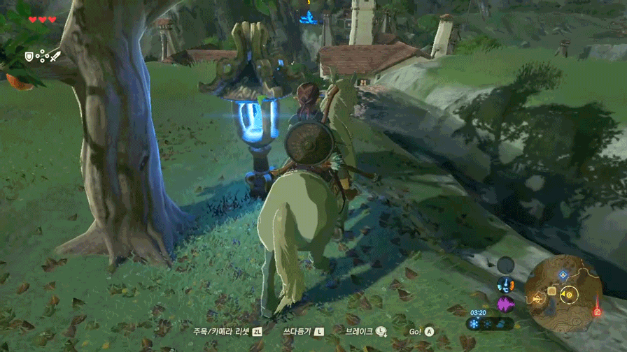 횃불을 든 채로 말을 타면 링크가 횃불을 집어넣으면서 불이 꺼집니다