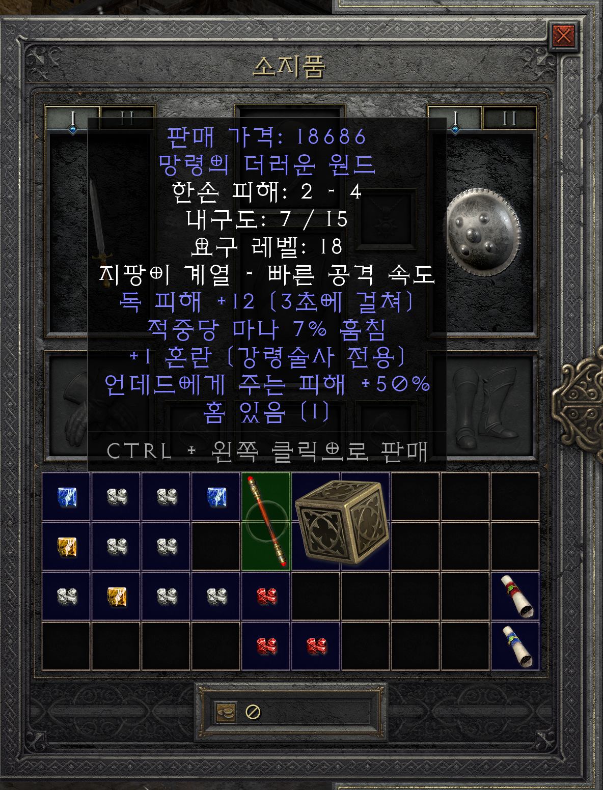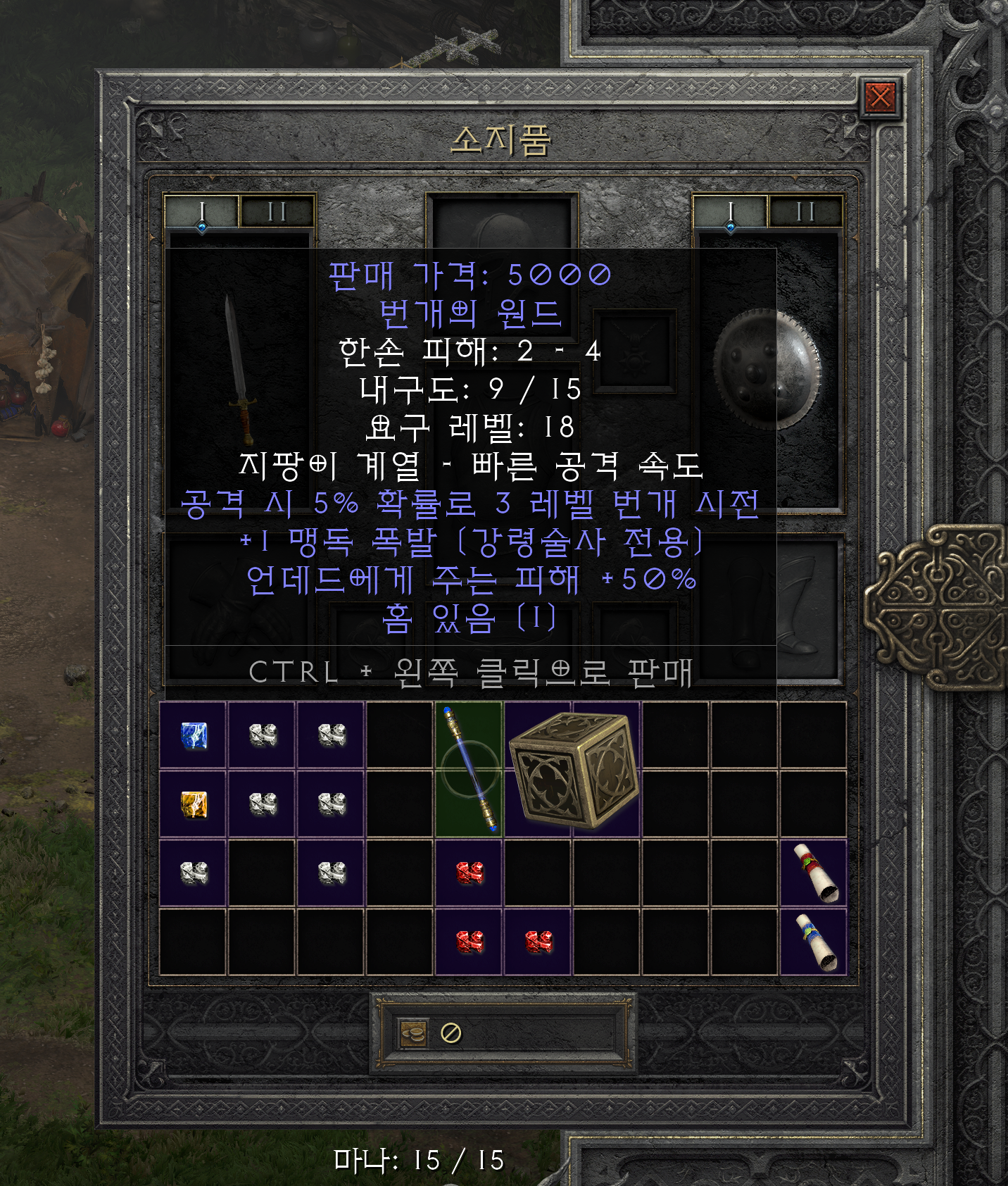 액트 1에서 팔았다면 5,000원 밖에 못 받았겠지만 액트 5에서 팔면 해당 아이템의 최대 가격인 18,000원에 팔 수 있는 모습입니다