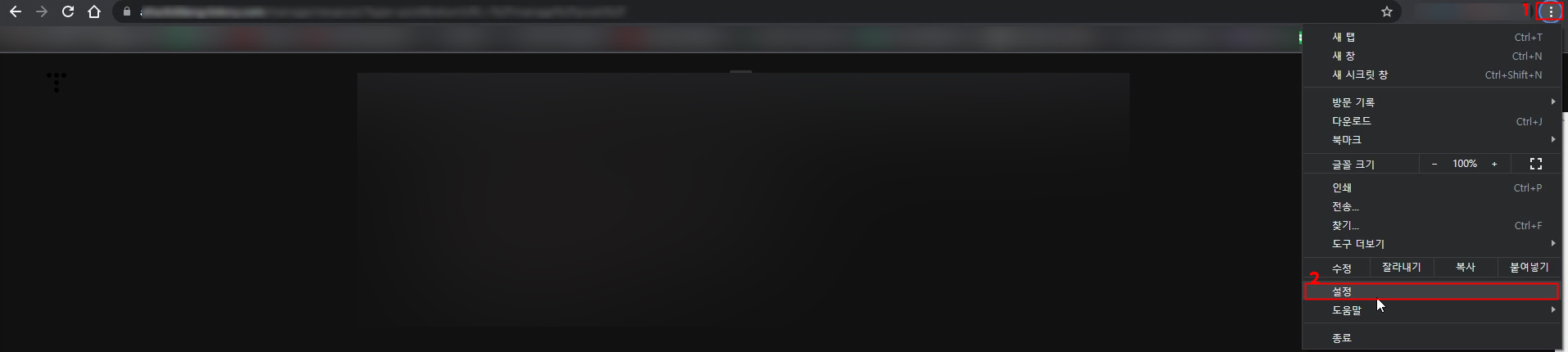 크롬 브라우저 우측 상단의 메뉴 버튼을 눌러 설정으로 들어가 주세요.