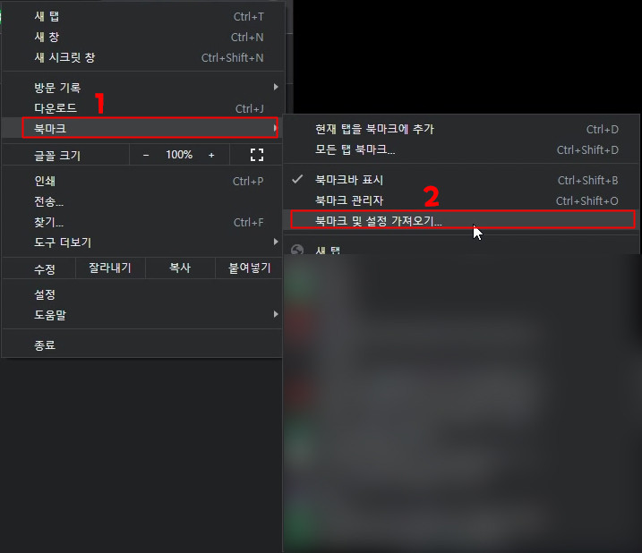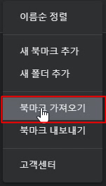 반대로 저장된 북마크를 불러오려할 땐 "북마크 가져오기"를 해주면 되겠죠?