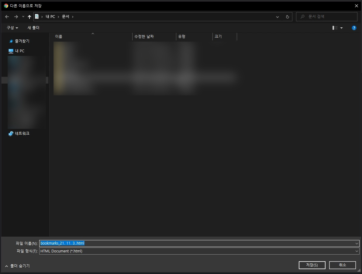 이렇게 지정한 경로에 html 파일로 북마크 목록을 저장 백업할 수 있습니다
