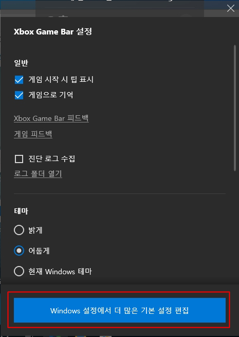 설정창이 나오면 하단의 "windows 설정에서 더 많은 기본 설정 편집"을 눌러주세요.