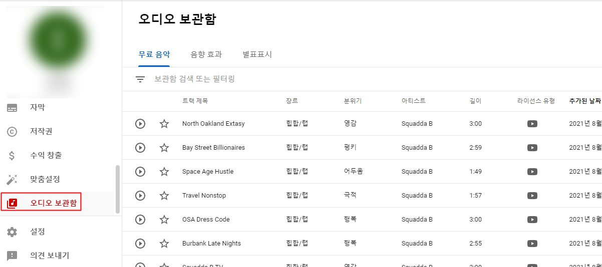 "유튜브 저작권 없는 오디오 파일 다운받기"