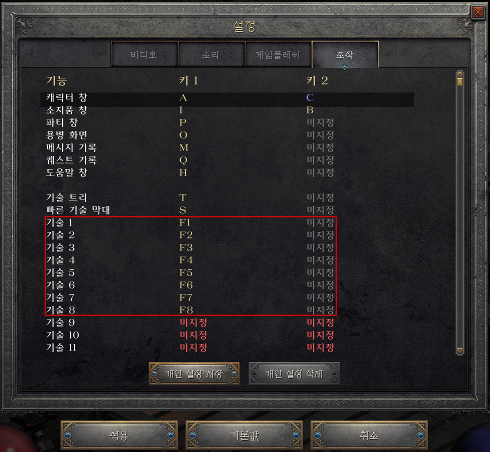 현재 가장 불편한 위쪽에 있는 기술 단축키들을 바꿔줍니다