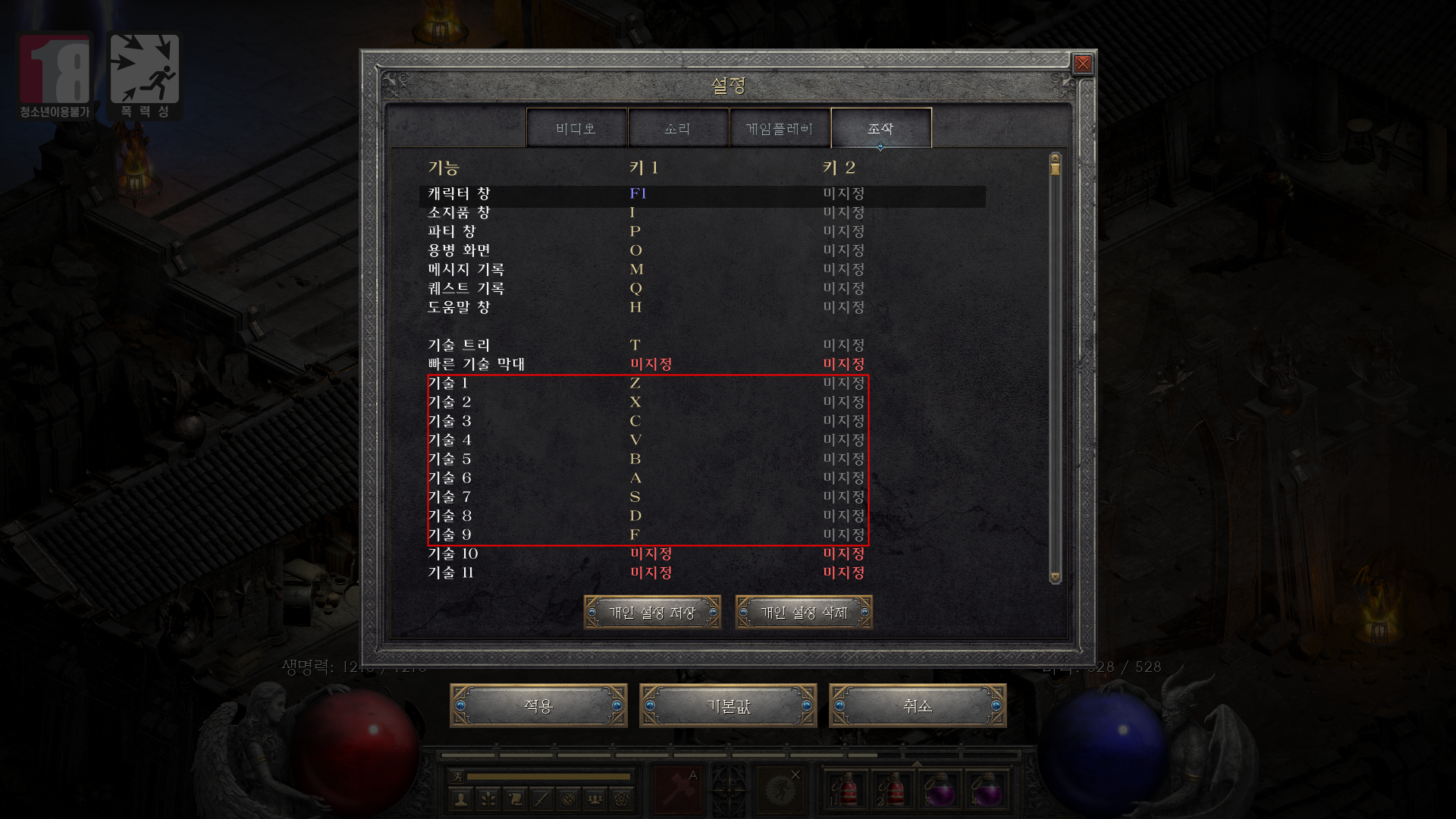 근데 이러면 기본 설정인 C키 하나가 캐릭터 창과 겹쳐 캐릭터창 단축키가 남게 되니